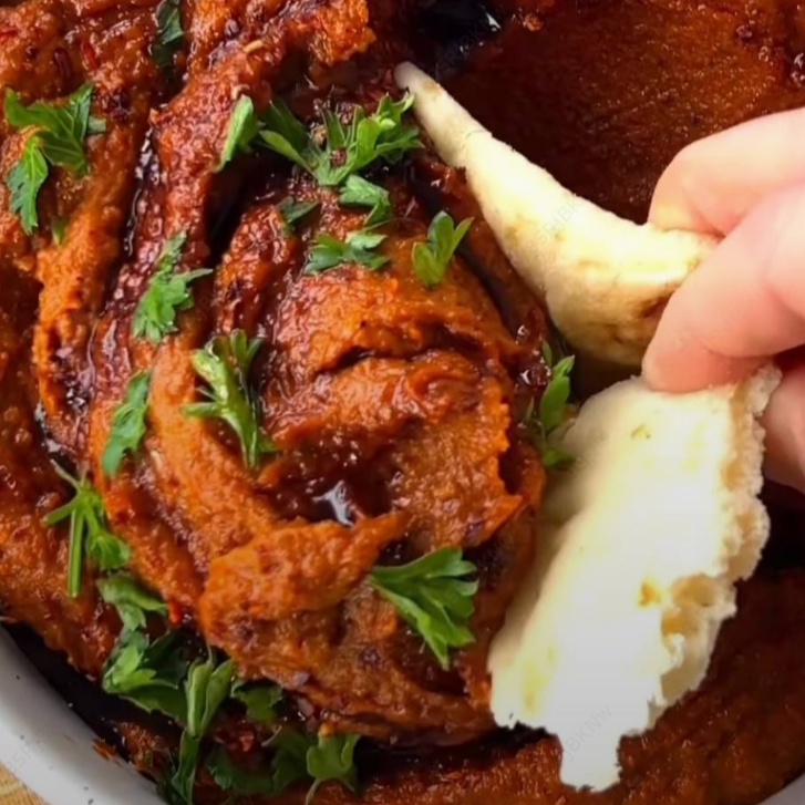 Dip de pimientos rojos asados con nuestra especies, aceite de oliva extra virgen, nueces. Con un pan pita. Un clásico de la cocina Griega.