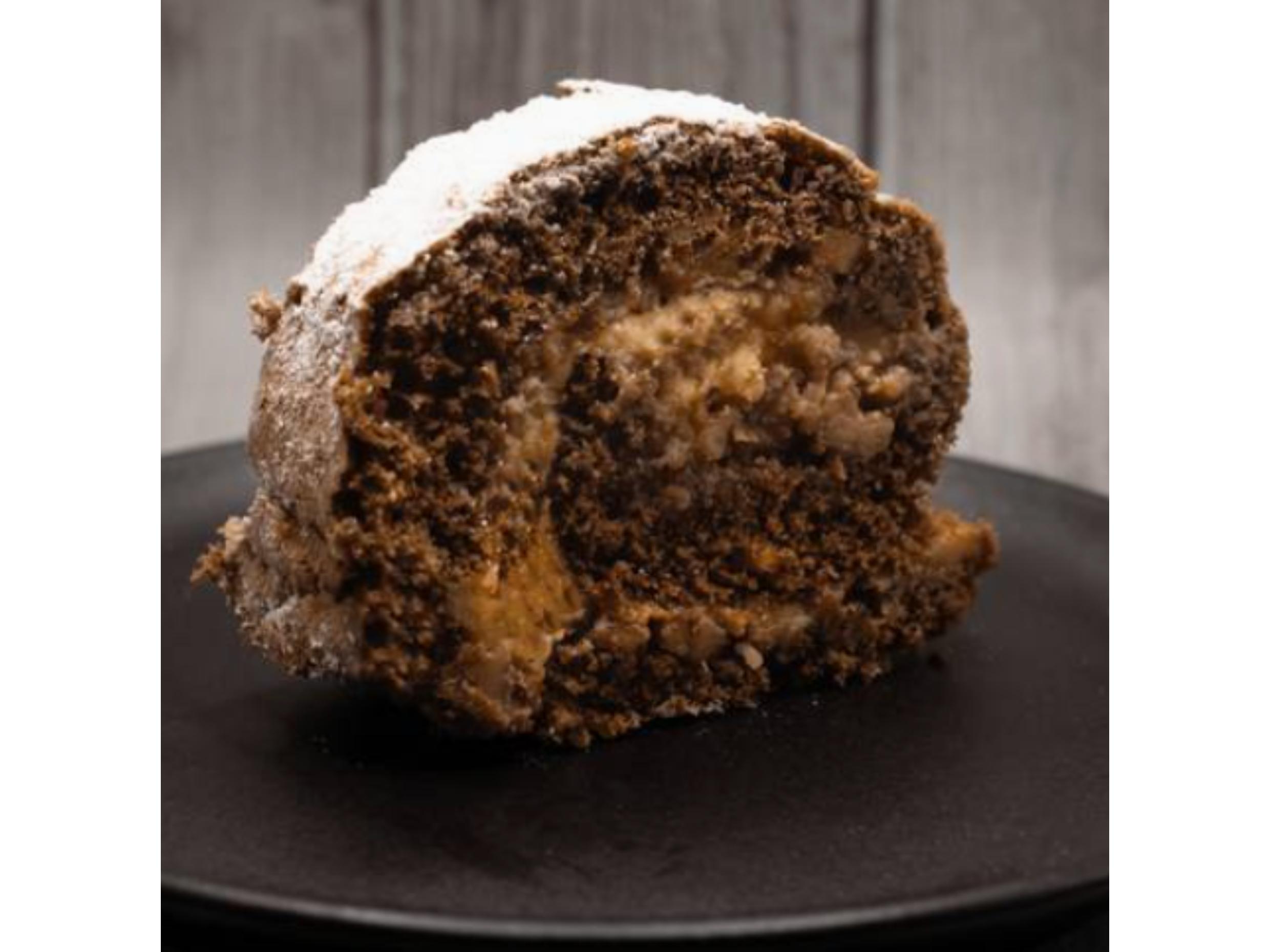 Bola de pan de masa madre rellena con gallo pinto, huevo al gusto, queso mozzarella y natilla