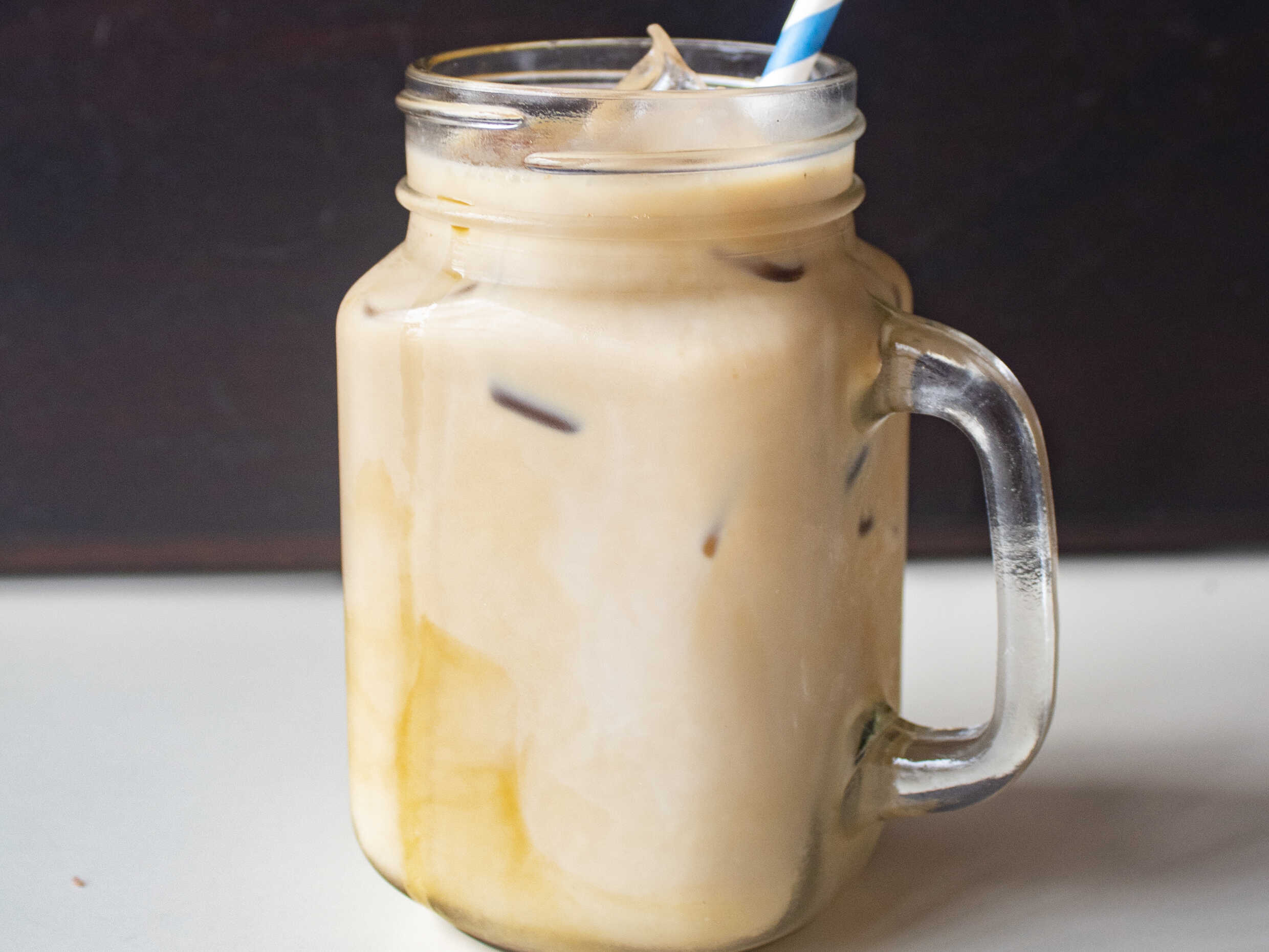 Espresso con leche, hielo, leche y su sabor favorito a escoger (16 oz)