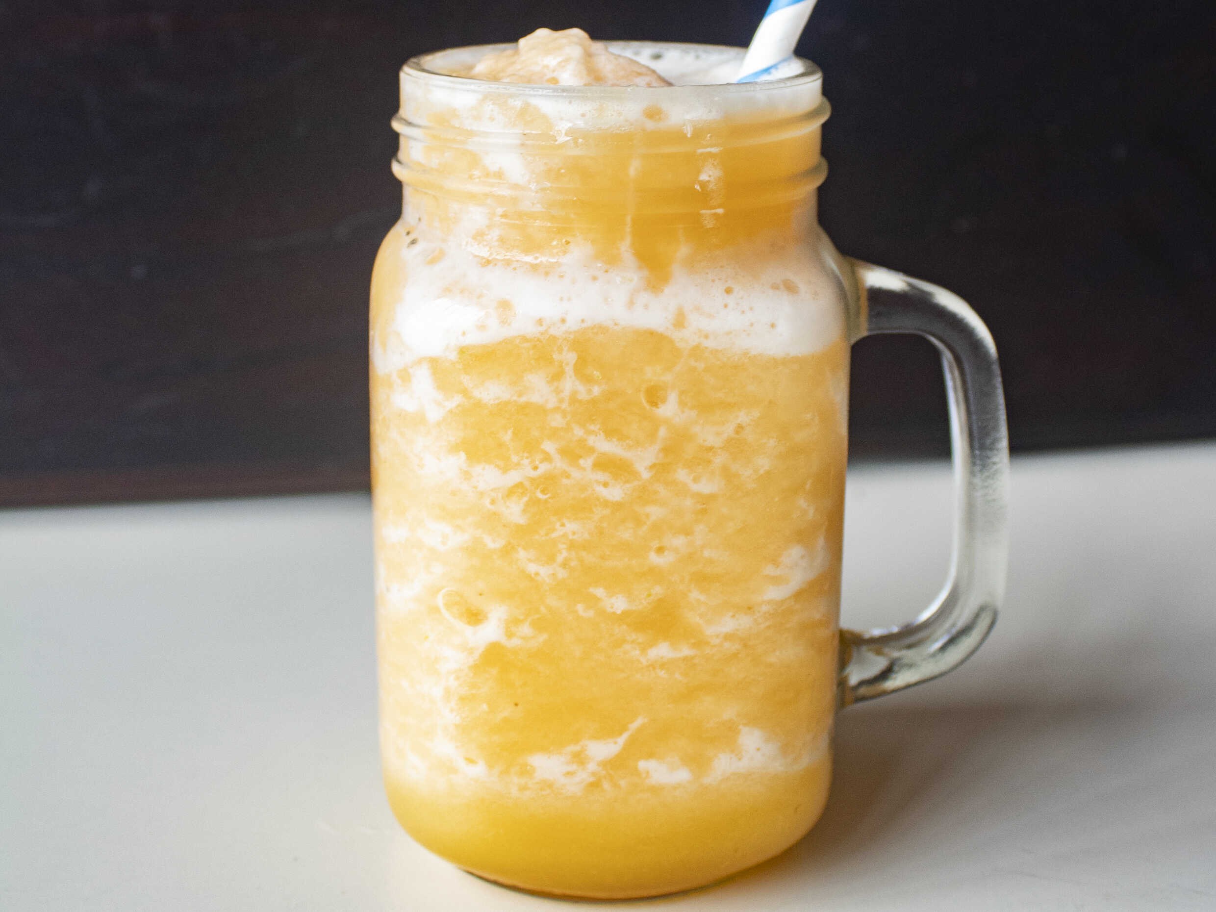 Crema de ayote servida dentro de una bola de pan de masa madre