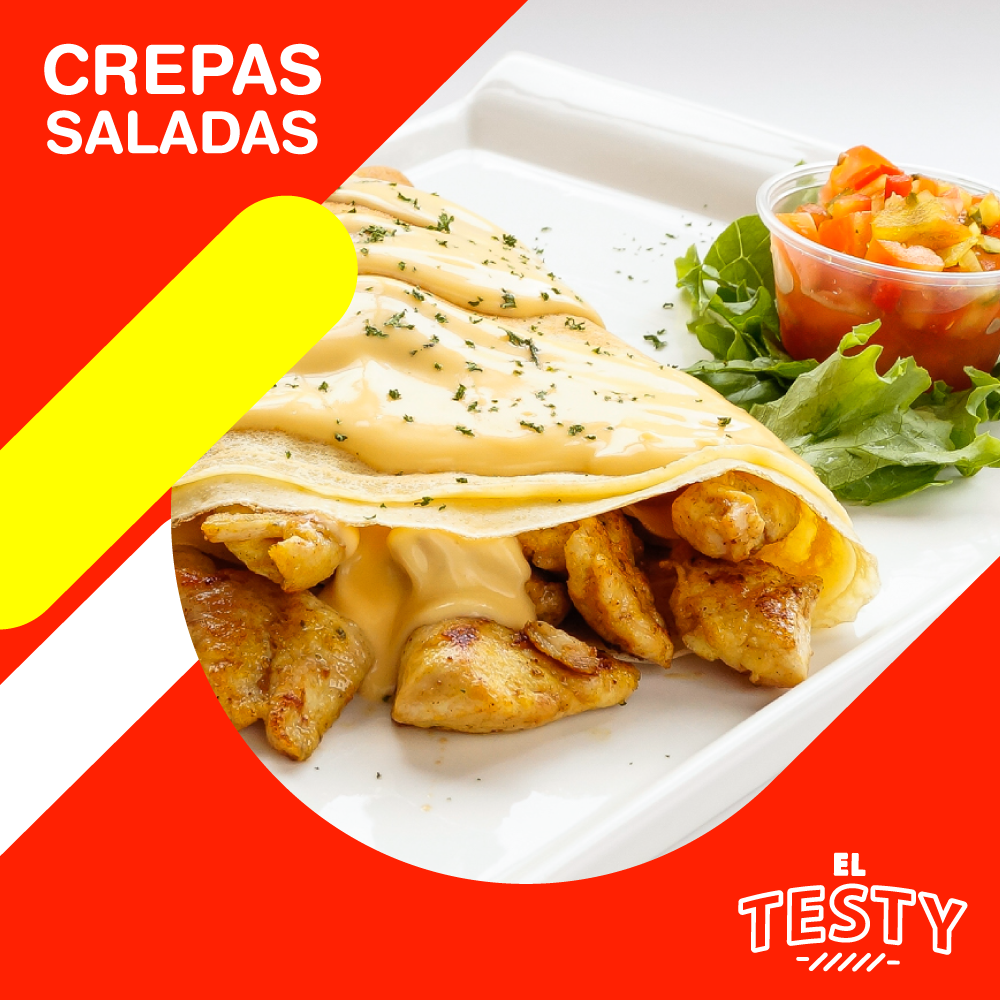 Deliciosa crepa jamón, queso provolonne y salsa de hierbas acompañada de ensalada de chimichurri.