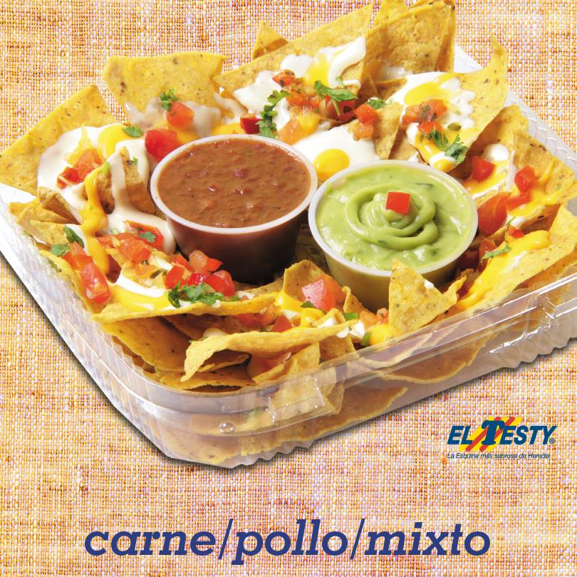 Elaborado con deliciosas tortinachos, lechuga picada, chimichurri, guacamole, frijoles nachos, salsa queso cheddar, natilla, carne mechada o filete de pollo mechado. Acompañado de gaseosa 355 ml.