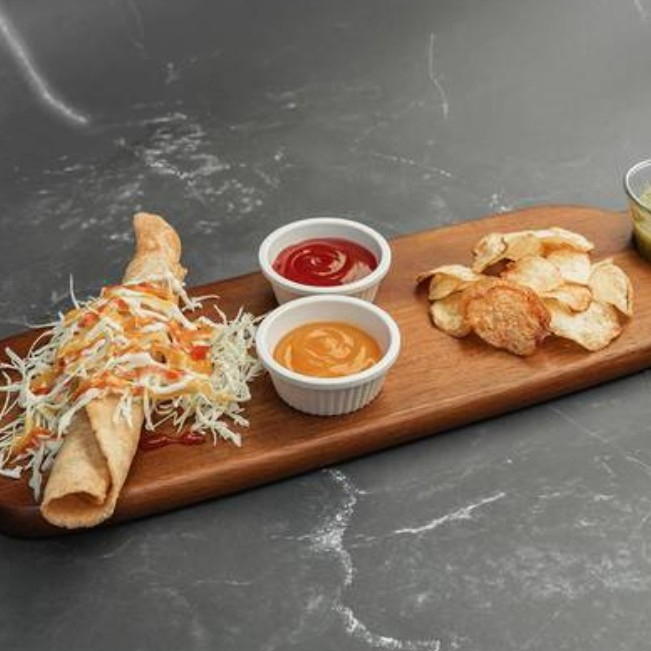 Salsas y repollo, papas fritas y Coca Cola 355 ml