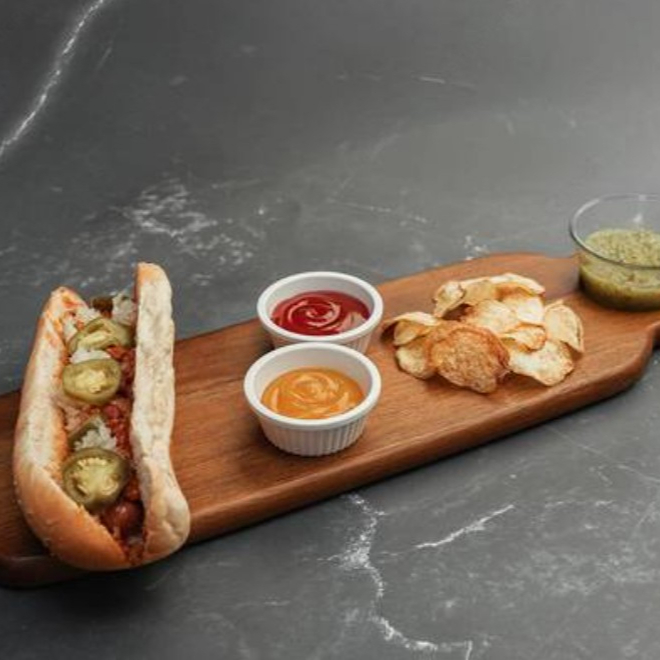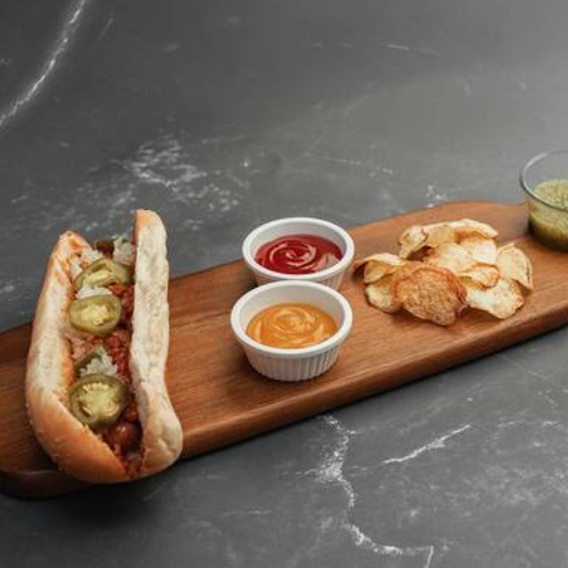 Jalapeños, cebolla, chile con carne, papas fritas y Coca Cola 355 ml