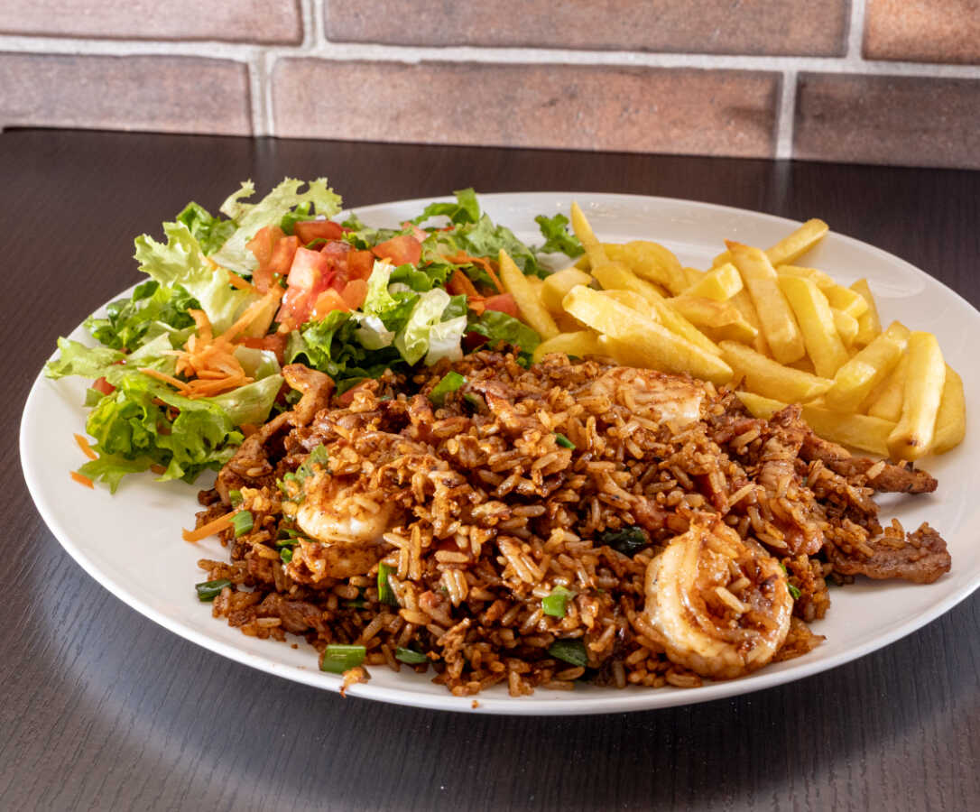 Arroz con Camarones + Bebida a elegir