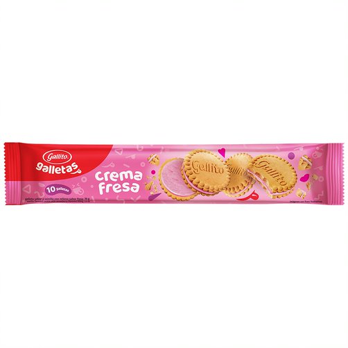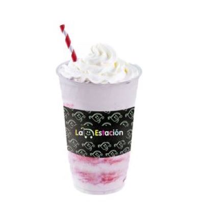 El icónico frescoleche de sabor de fresa, con topping de crema chantilly y topping de galleta Gallito de Fresa.