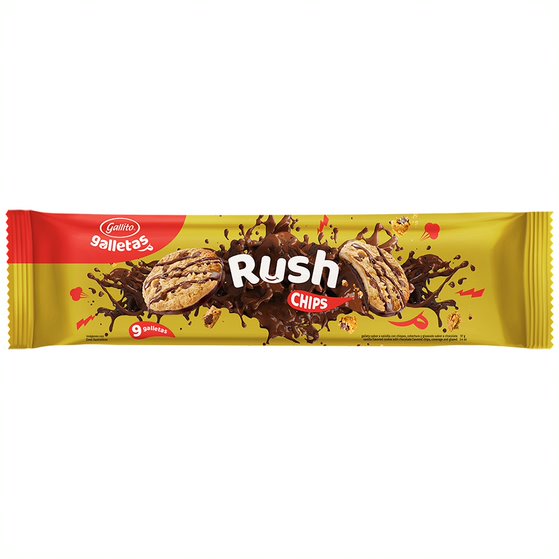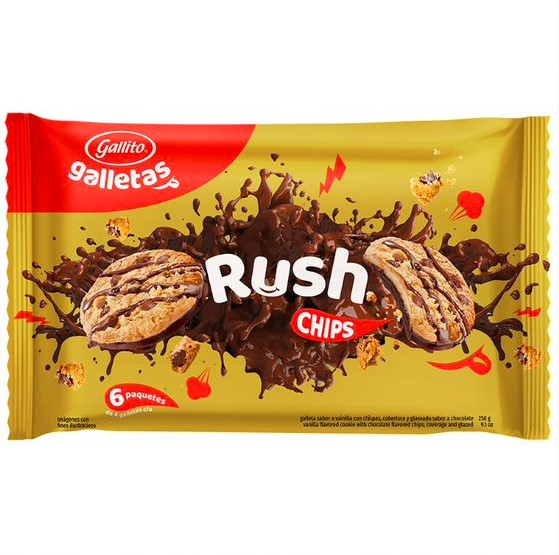 El icónico frescoleche de sabor de Chocolate, con sirope de chocolate, topping de crema chantilly y topping de galleta Rush de Gallito.