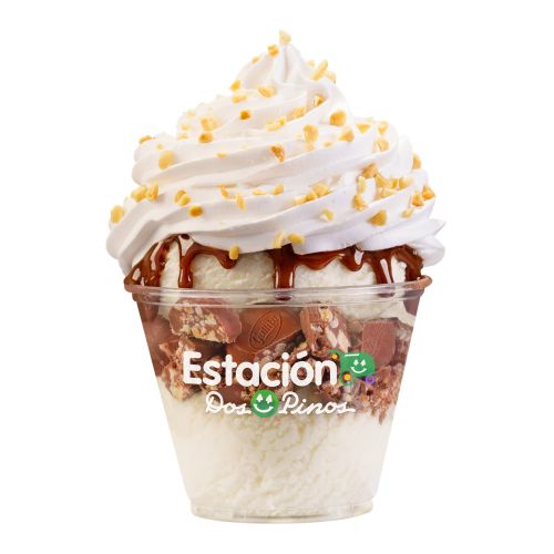 Combinamos helado a elegir con el icónico chocolate Tapita y sirope de caramelo, con topping de crema chantilly y maní.