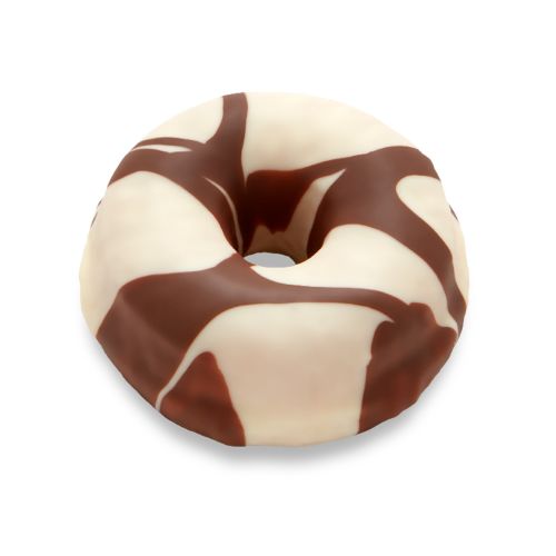 Deliciosa dona recubierta de chocolate blanco veteada con chocolate de leche.