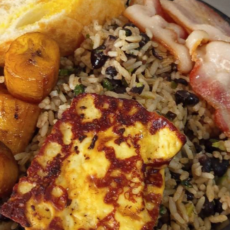 Gallo Pinto con Queso, Maduro y Tocineta