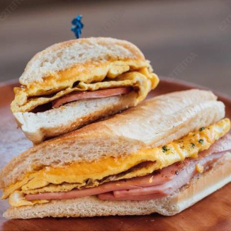 Delicioso pan baguette con jamón queso amarillo huevo, lechuga, tomate rebanado, cebolla gratinada, salsa de tomate mostaza y mayonesa.