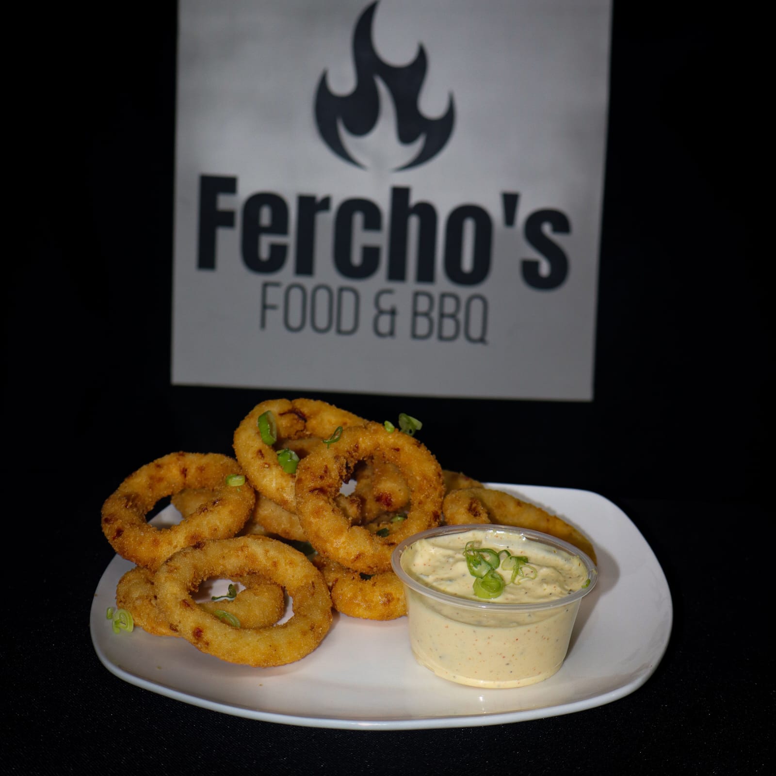 Deliciosa orden de 10 aros de cebolla acompañado con salsa ferchos.