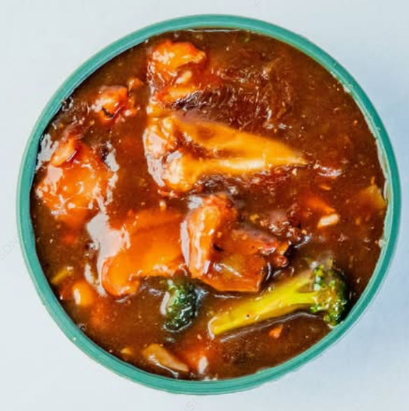 1 Entero de cantonés, papas fritas con carne mechada de la casa y salsas de la casa.