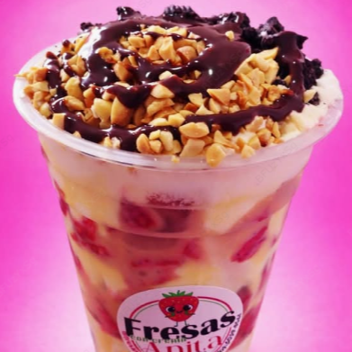 Delicioso Vaso relleno de tu Fruta Favorita con Oreo acompañado de 2 Topping Liquidos.