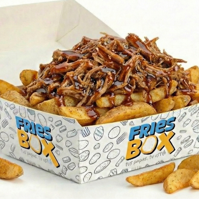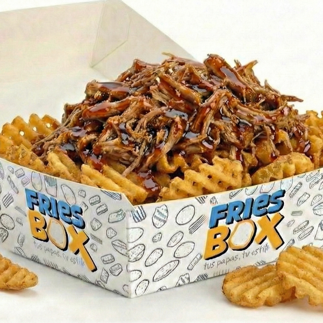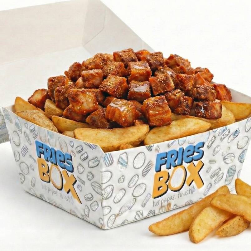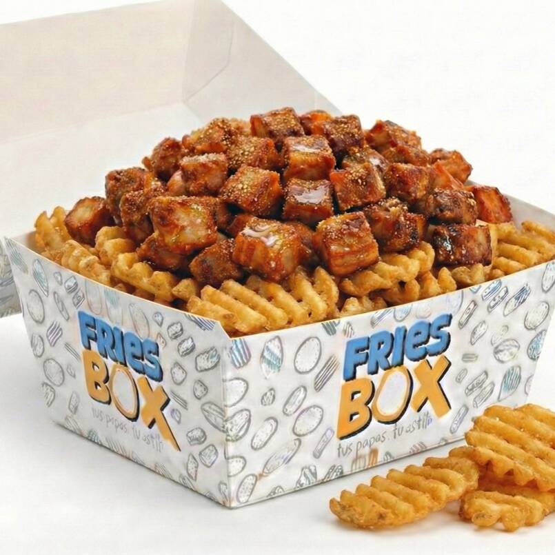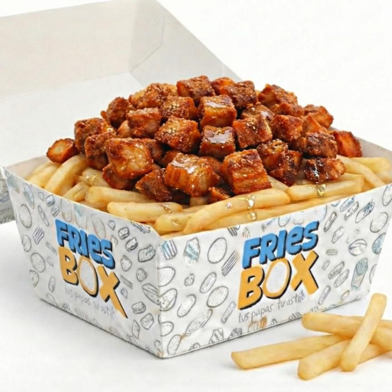 La mezcla perfecta de papas fritas clásicas con chicharrón de cerdo crujiente y carnoso.