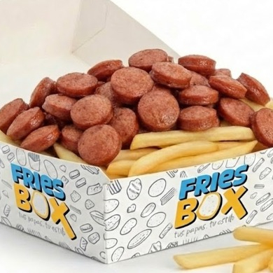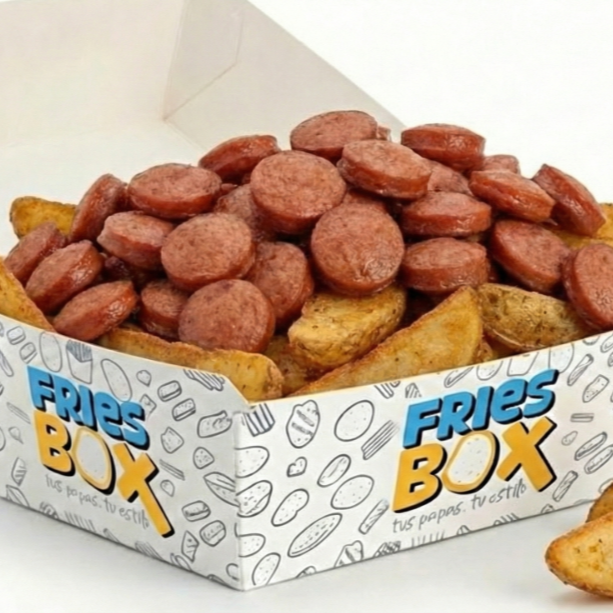 Deliciosa combinación de papas fritas de corte tradicional acompañadas de trozos de salchicha de alta calidad.