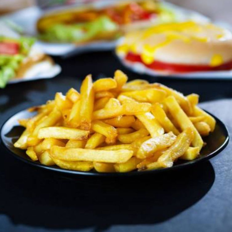 Hamburguesa con pechuga de pollo 130 g a la plancha, acompañada de 200 g papas fritas , lechuga, tomate, cebolla y salsa.
