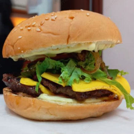 Ingredientes: doble torta de carne de res, doble queso, tomate, lechuga y cebolla.