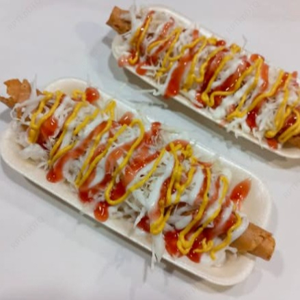 Ingredientes, pan, salchicha, salsas.
