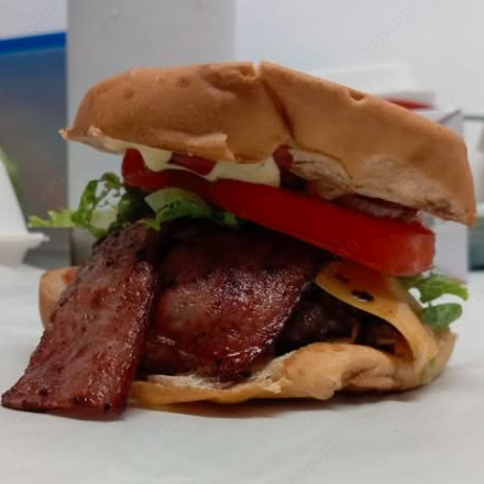 Doble carne de res, doble queso, tomate, lechuga, cebolla, tocino y salsas especiales.