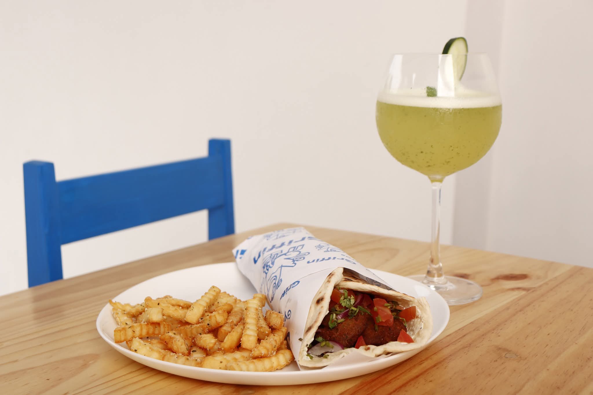 Gyro de pollo, unas papas fritas*1 + Limonada de hierbabuena y pepino*1