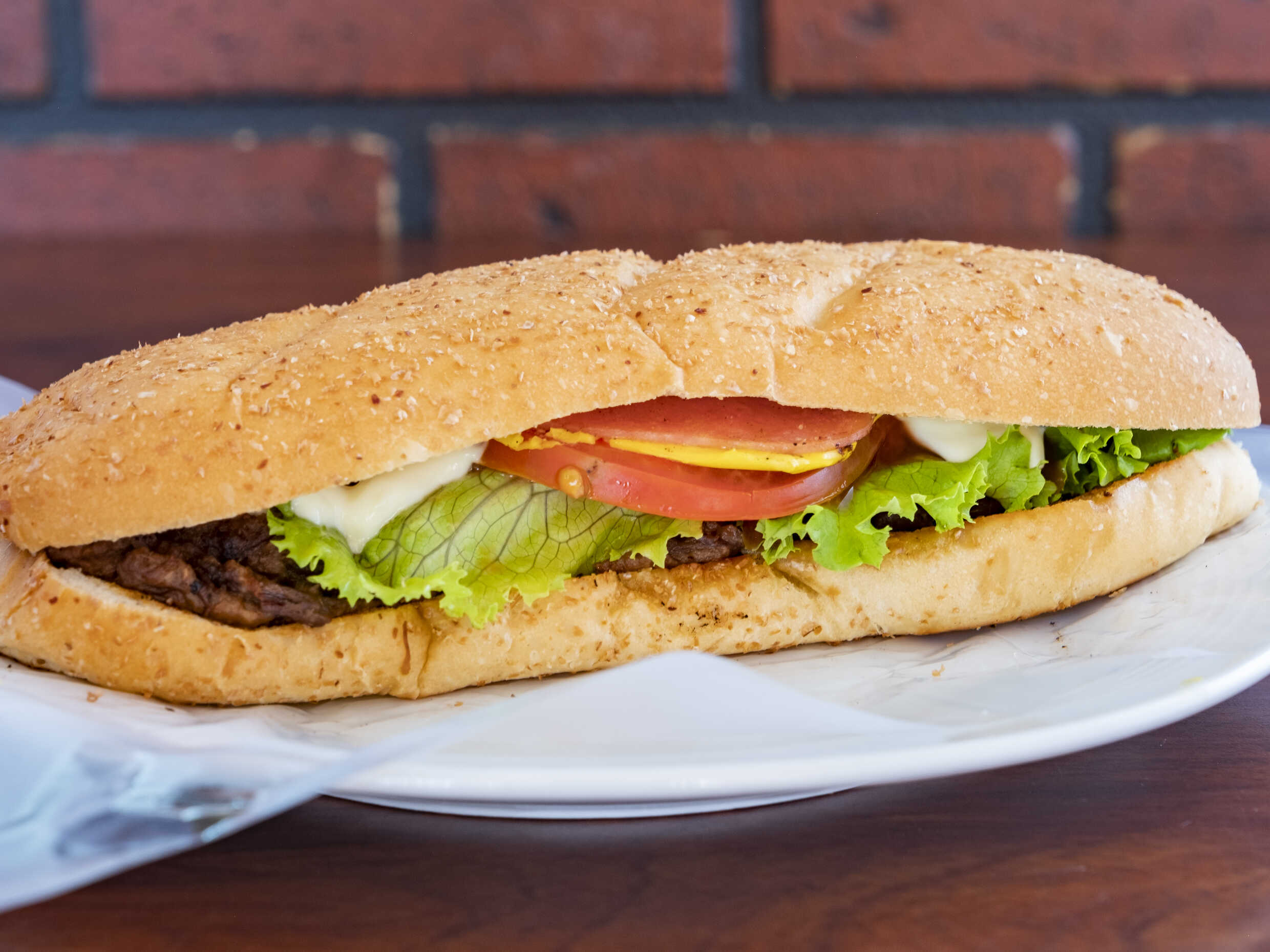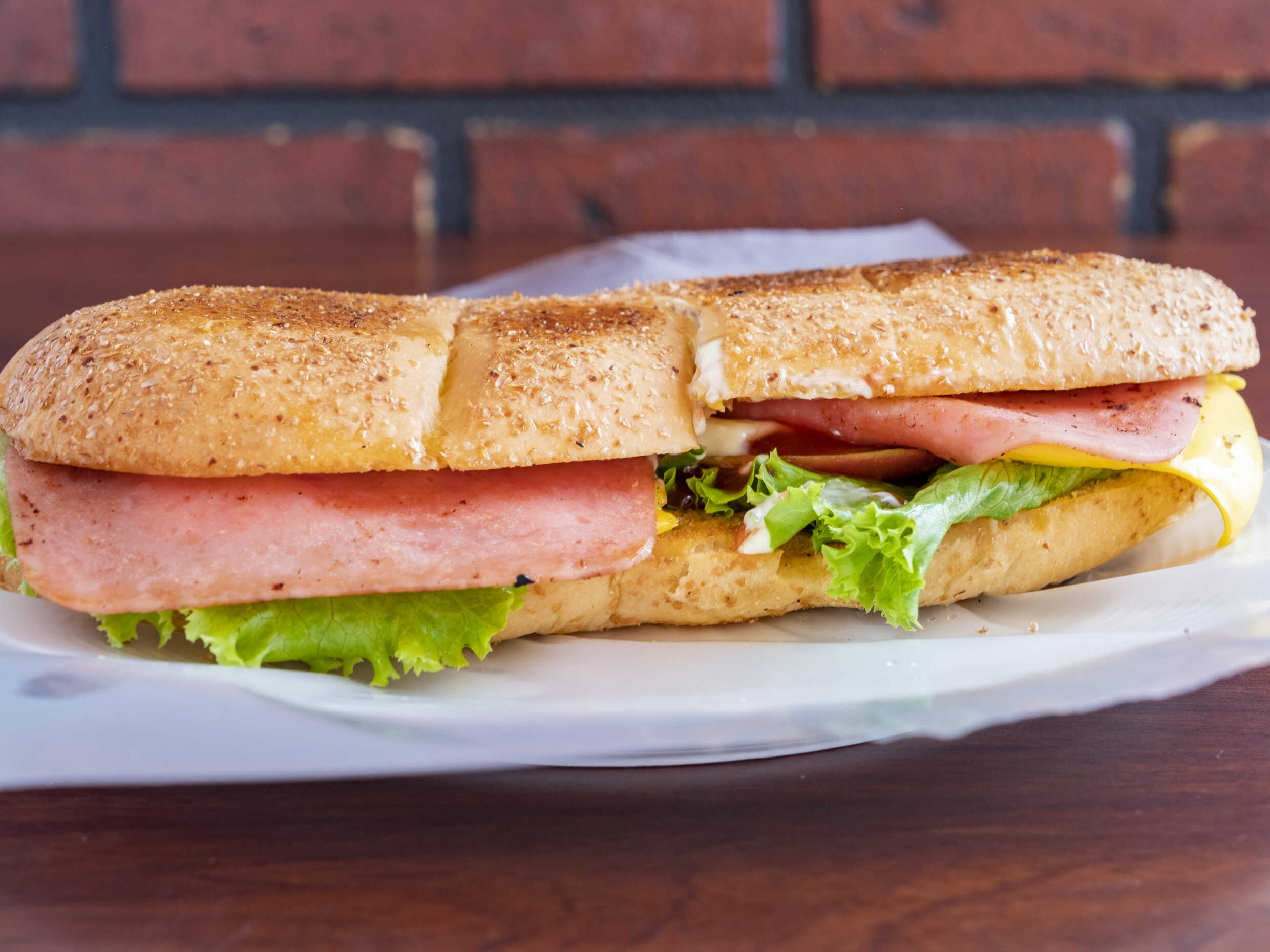 Deléitate con nuestro sándwich de carne en salsa, jugosa y llena de sabor. Combinado con jamón y queso amarillo derretido, este sándwich se complementa con nuestras salsas caseras y vegetales frescos. Cada bocado ofrece una deliciosa mezcla de sabores que te hará querer más. Perfecto para una comida reconfortante o una merienda deliciosa. ¡No te lo puedes perder!