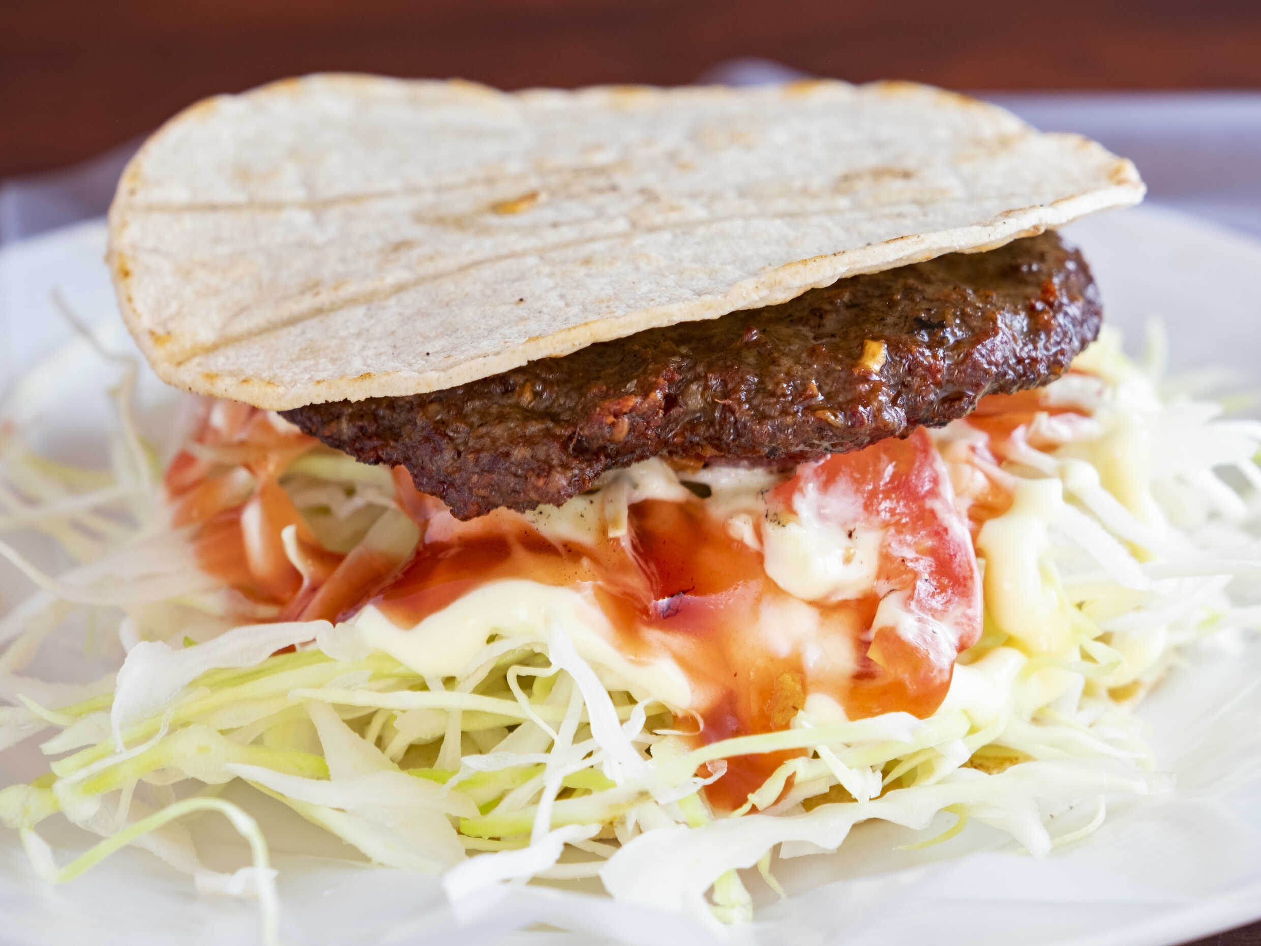 Deléitate con nuestra torta de carne, jugosa y llena de sabor, servida con frescas tortillas y tomate natural. Complementada con nuestras salsas caseras, cada bocado es una explosión de sabores que te transportará a la tradición culinaria. Ideal para disfrutar en cualquier momento del día, ¡esta torta de carne es un clásico que no te puedes perder!