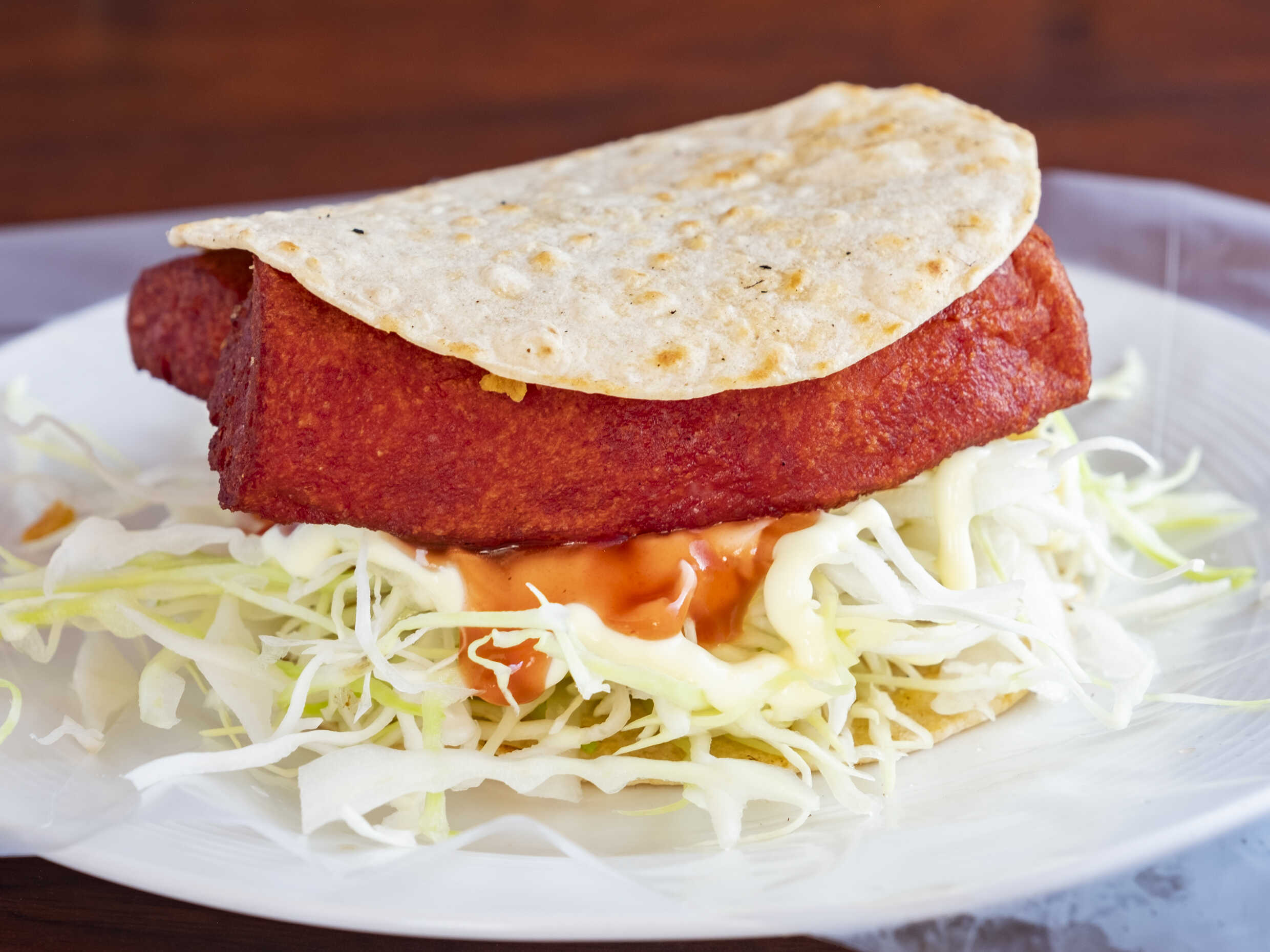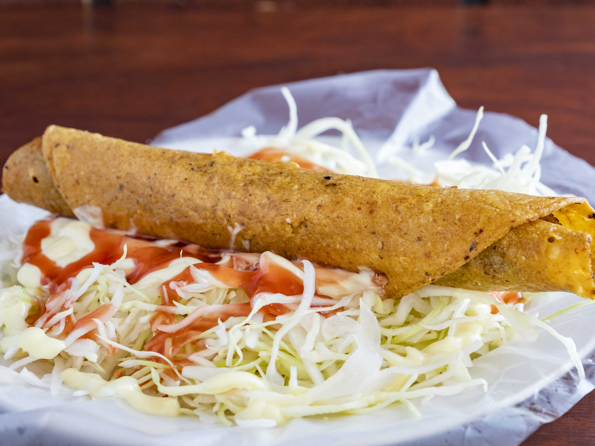 Disfruta de nuestro delicioso taco de tortilla de harina, relleno de tierna carne mechada y repollo fresco, todo acompañado de nuestras salsas caseras. ¡Un clásico que nunca falla y que te hará querer más!