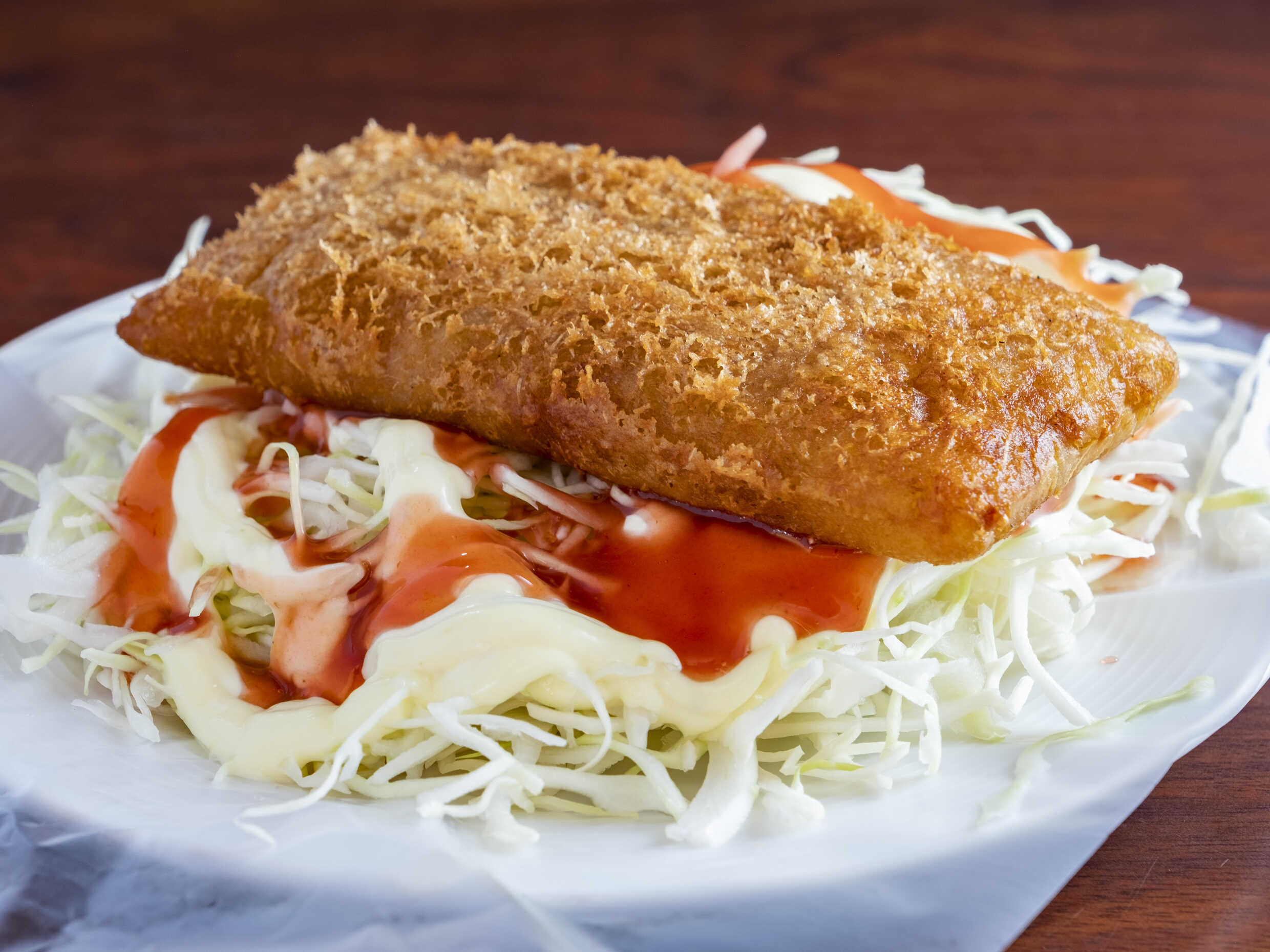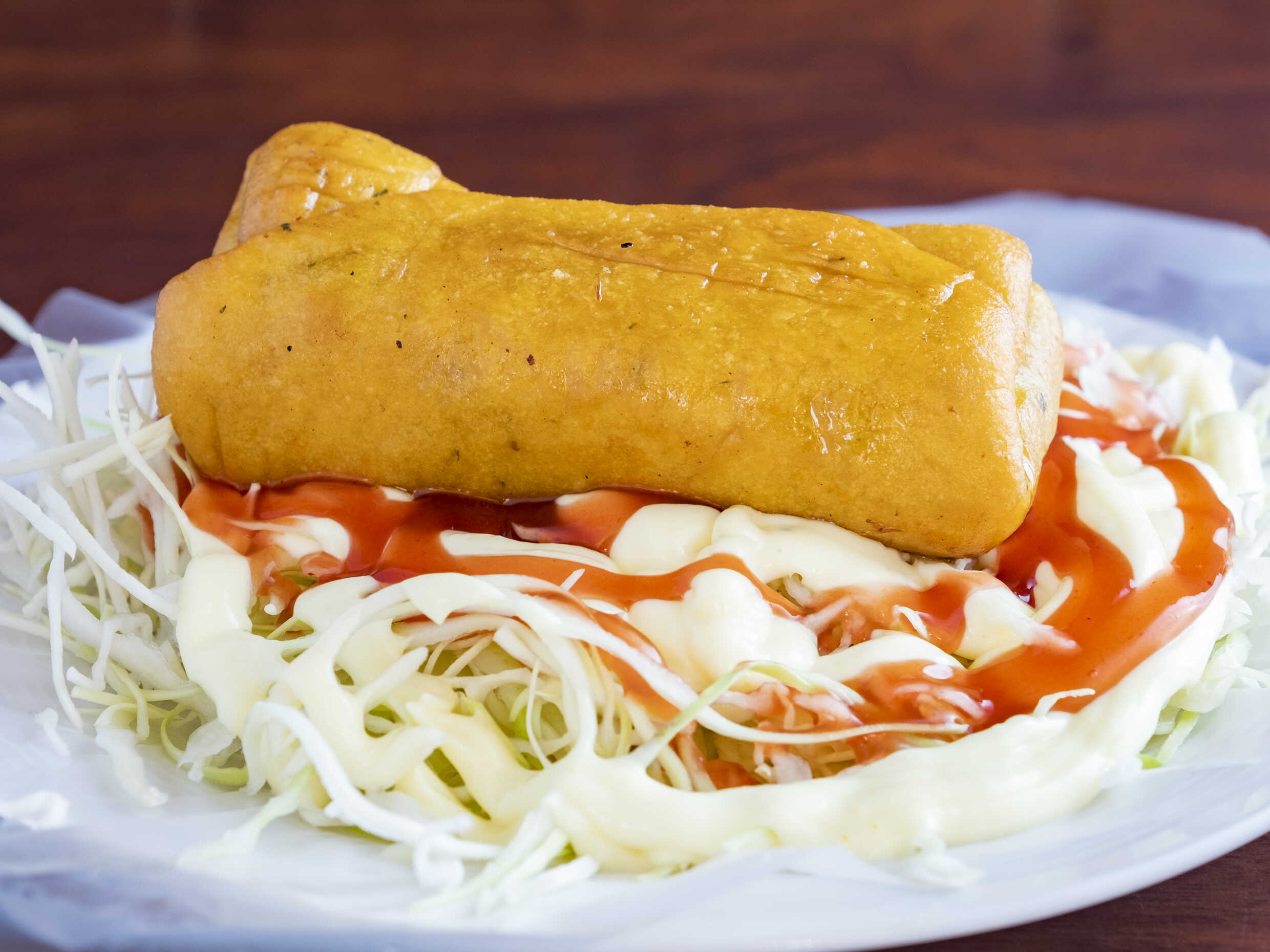 Deléitate con nuestro raviol, un platillo suave y delicioso con un sabroso relleno de carne. Elaborado con un canelón en su interior, se complementa perfectamente con fresca ensalada de repollo y nuestras salsas caseras. Cada bocado es una combinación de sabores que te dejará satisfecho. Ideal para quienes buscan una experiencia culinaria única. ¡No te lo puedes perder!