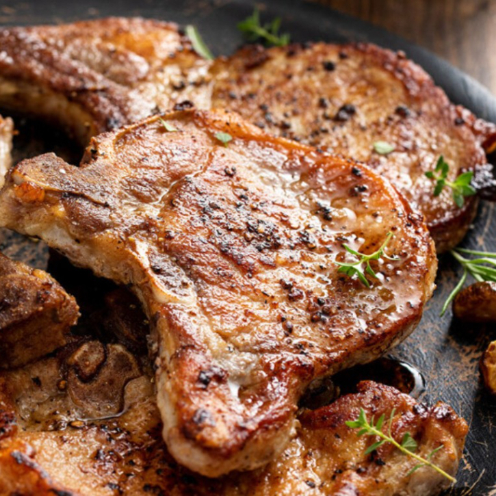 Chuletón de cerdo, viene con 2 acompañamientos.