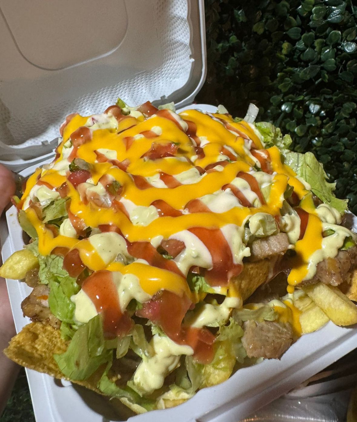 Papas supremas, frijoles molidos, pico de gallo, proteína a elegir, salsa de queso y salsas de la casa.