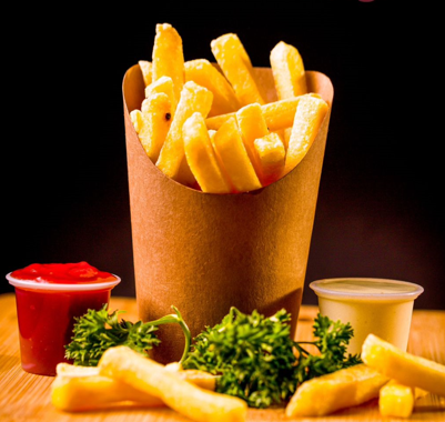 Papas fritas crujientes acompañadas con salsas de la casa.