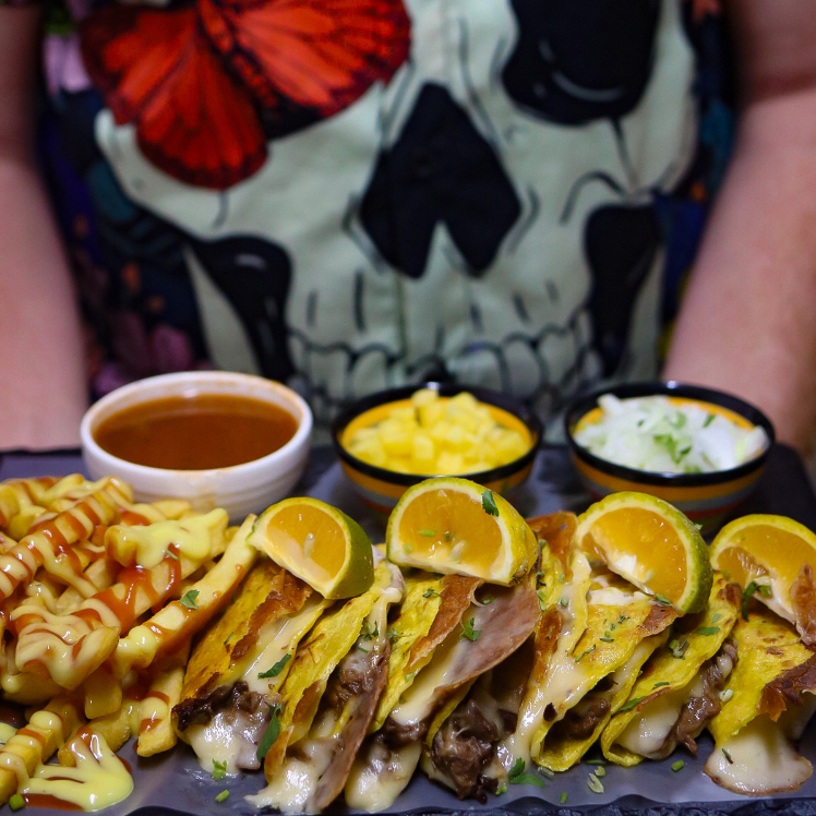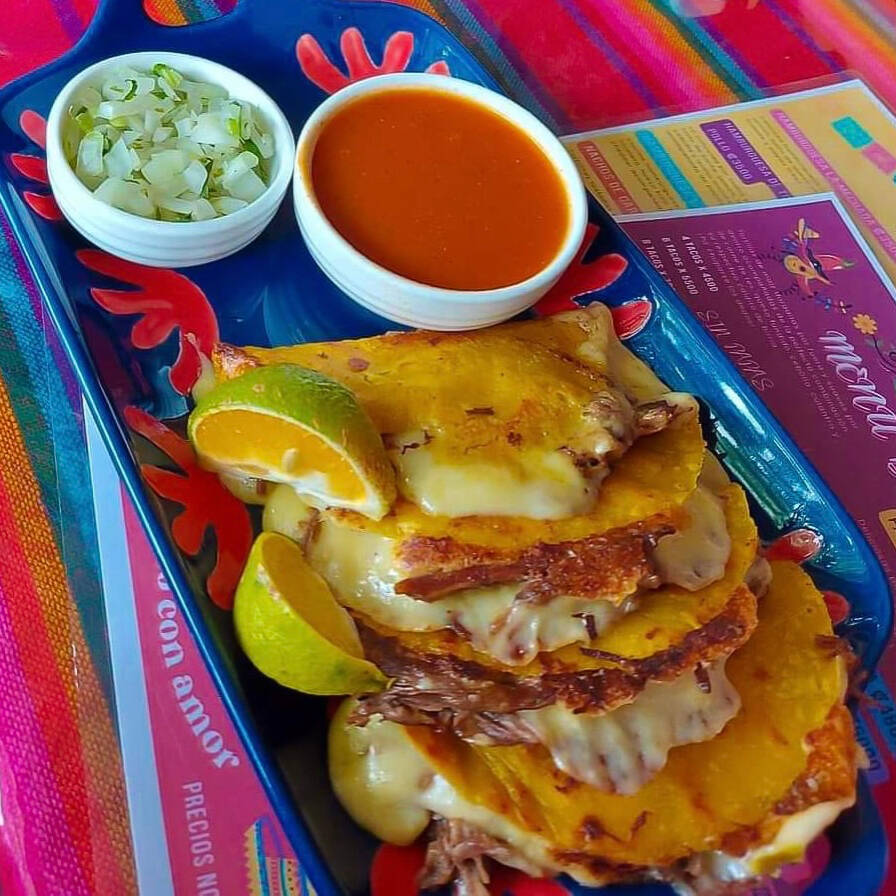 ¿Amante del queso? 4 tortillas hechas de queso mozzarella, acompañado de la perfecta combinación de carne de res, caldito de birria y olores (aparte). El sabor no lo podrás creer.