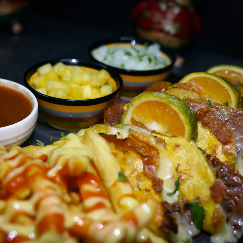 6 Tortillas de maíz doraditas por fuera y suaves por dentro, acompañadas de la perfecta combinación de carne de res, queso fundido, cebolla, culantro y su respectivo caldito de birria. ¡Pa' chuparse los dedos! Adicional con orden de papas fritas bañadas de mayonesa casera y salsa de tomate.