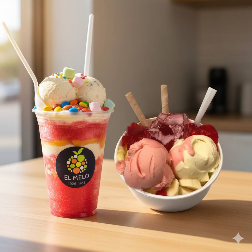 Delicioso granizado grande de 16 oz. con leche condensada, leche pinito, golosinas y una pelota de helado.