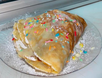 Crepa de Nutella con leche condensada, banano y chispas de colores.