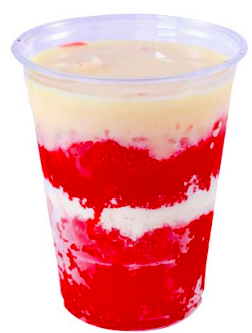 Granizado de 20 oz con leche Pinito, leche condensada, papaya, banano, piña, kiwi, uvas y fresa.