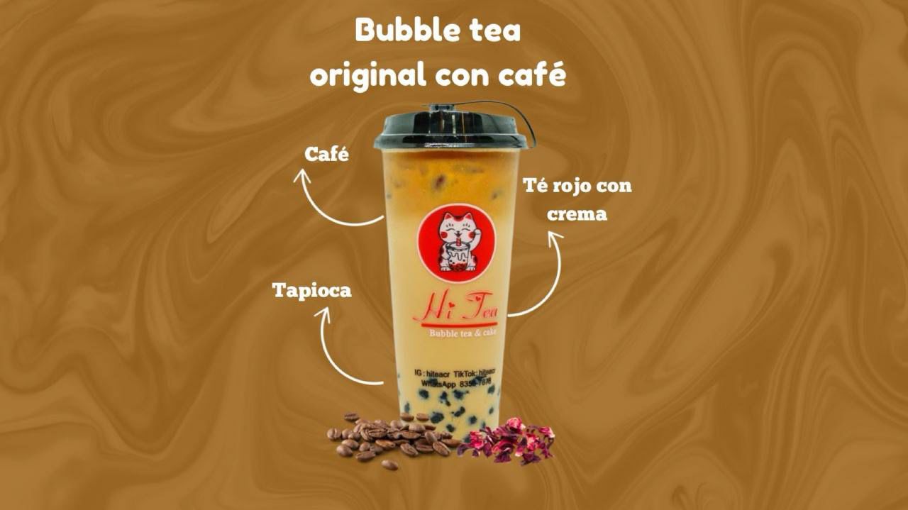 Té rojo original con leche y tapioca, bebida contiene.