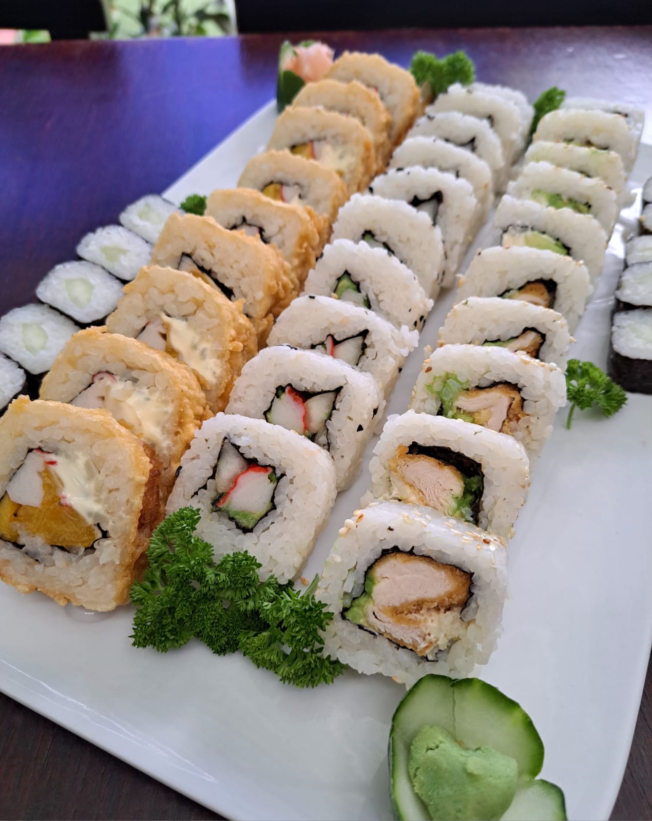 Deliciosas 40 Piezas de sushi, California, Fish Roll, Kanitempura, Maki de pepino
