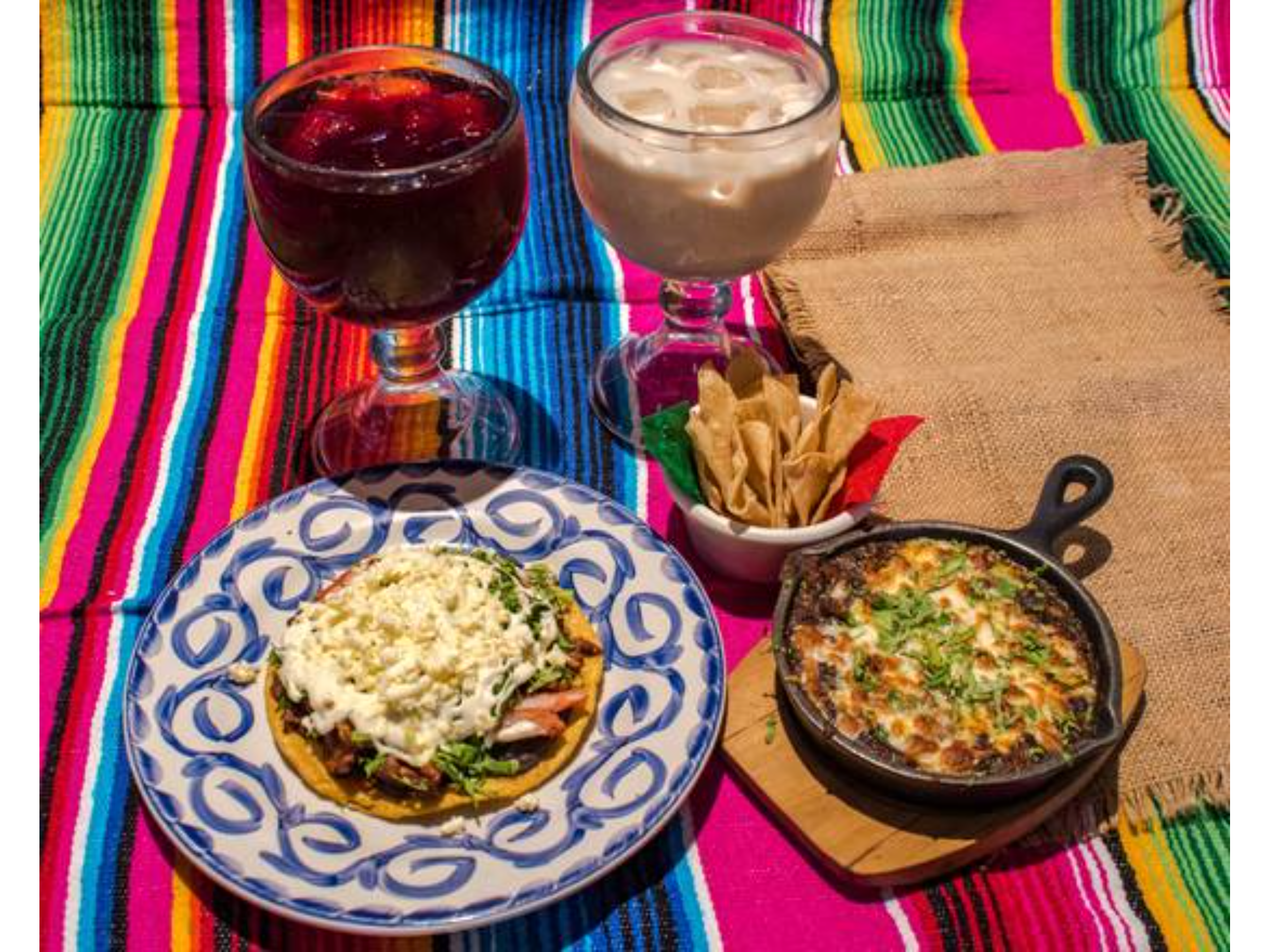 Crujiente tortilla de maíz doradita con frijoles, lechuga, queso fresco, crema y la carne que tu escojas.