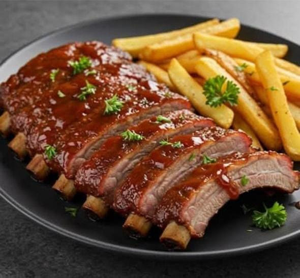 Rack completo de costillas estilo St. Louis + papas fritas grandes +Coca Cola de 1.5L