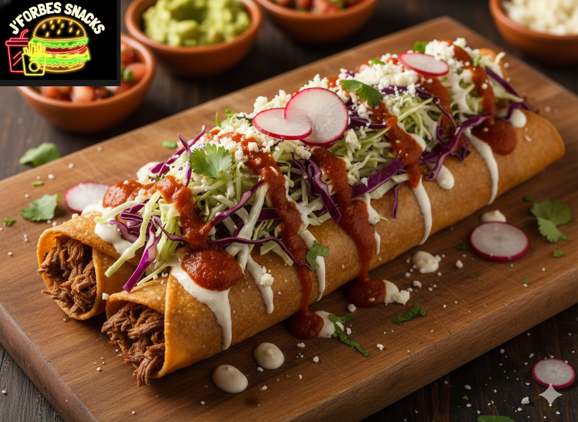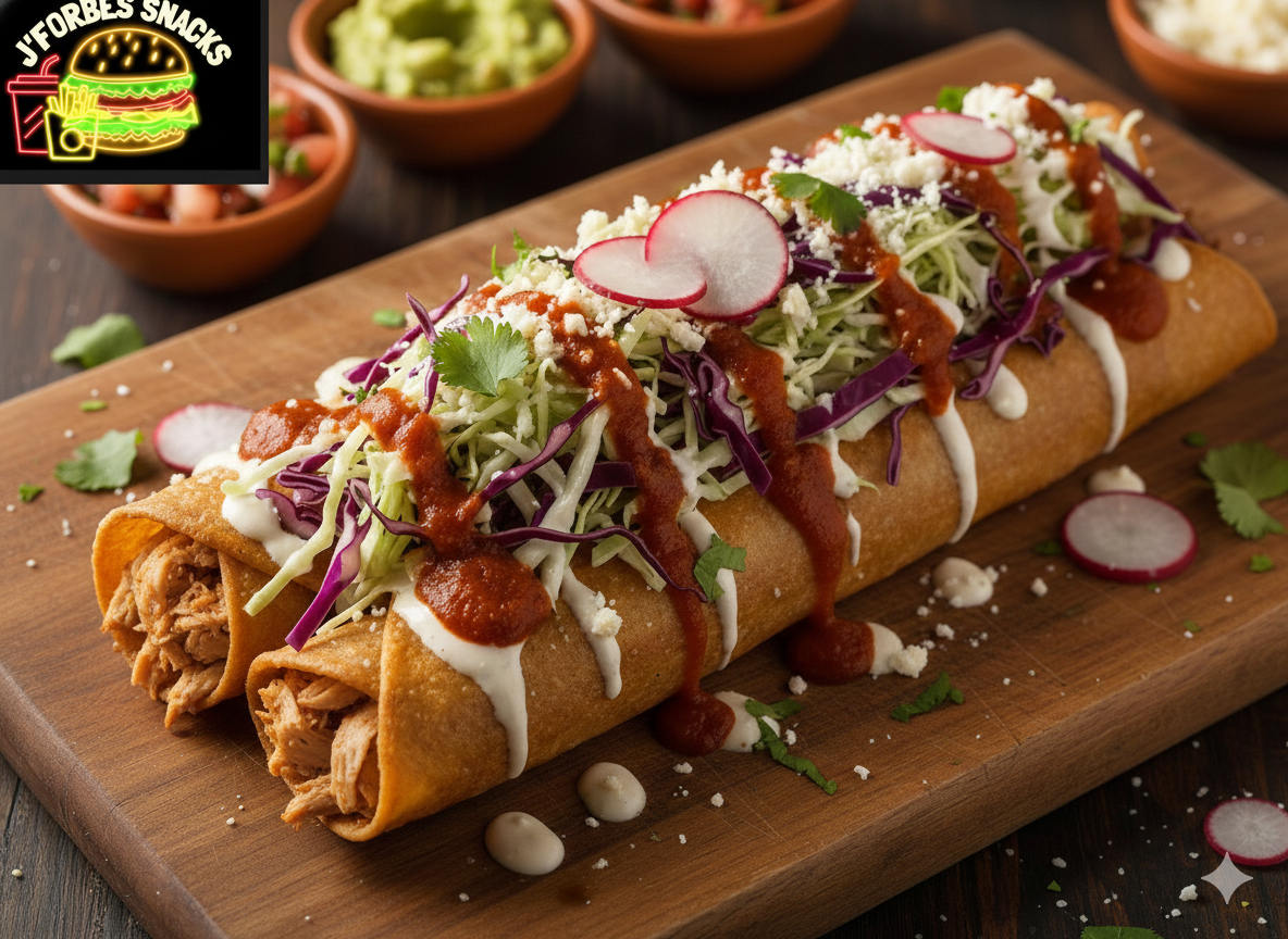 Carne mechada, cebolla morada, lechuga, tomate, salsa ranch.