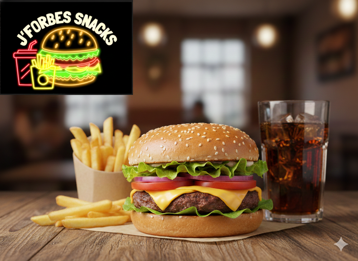 Pan, torta, queso, salsa de la casa, queso, papas, tomate, lechuga, aderezo J’Forbes.
