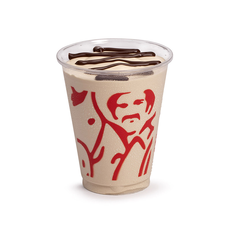 Es una bebida fria y refrescante, preparada con cafe espresso, base lactea, hielo, decorada con crema chantilly .