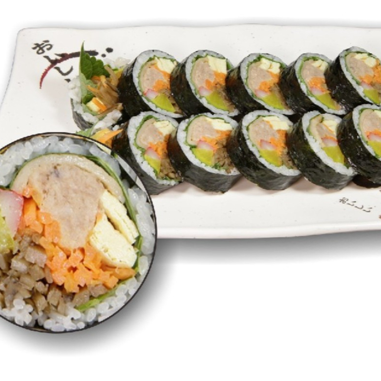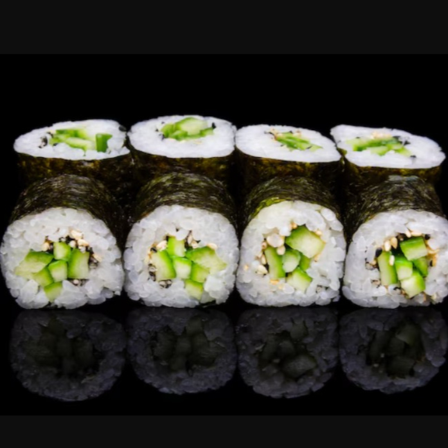 Hongo shiitake, pepino y aguacate. Cobertura de furikake. Todos incluyen 8 bocados.