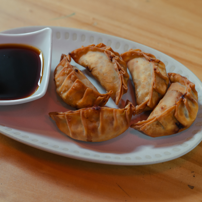 Empanaditas japonesas rellenas de cerdo molido repollo y cebollín.