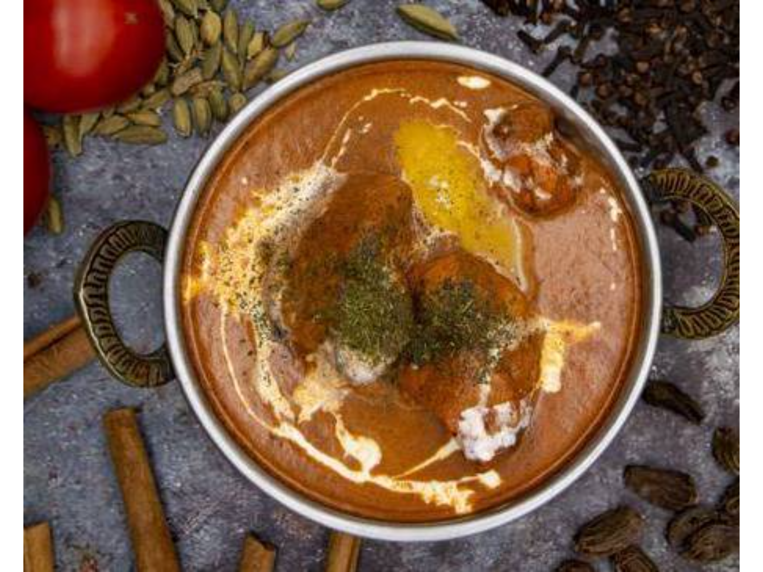 Boneless tandoori chicken pieces cooked in rich curry of butter, tomatoes & cashews with fenugreek.