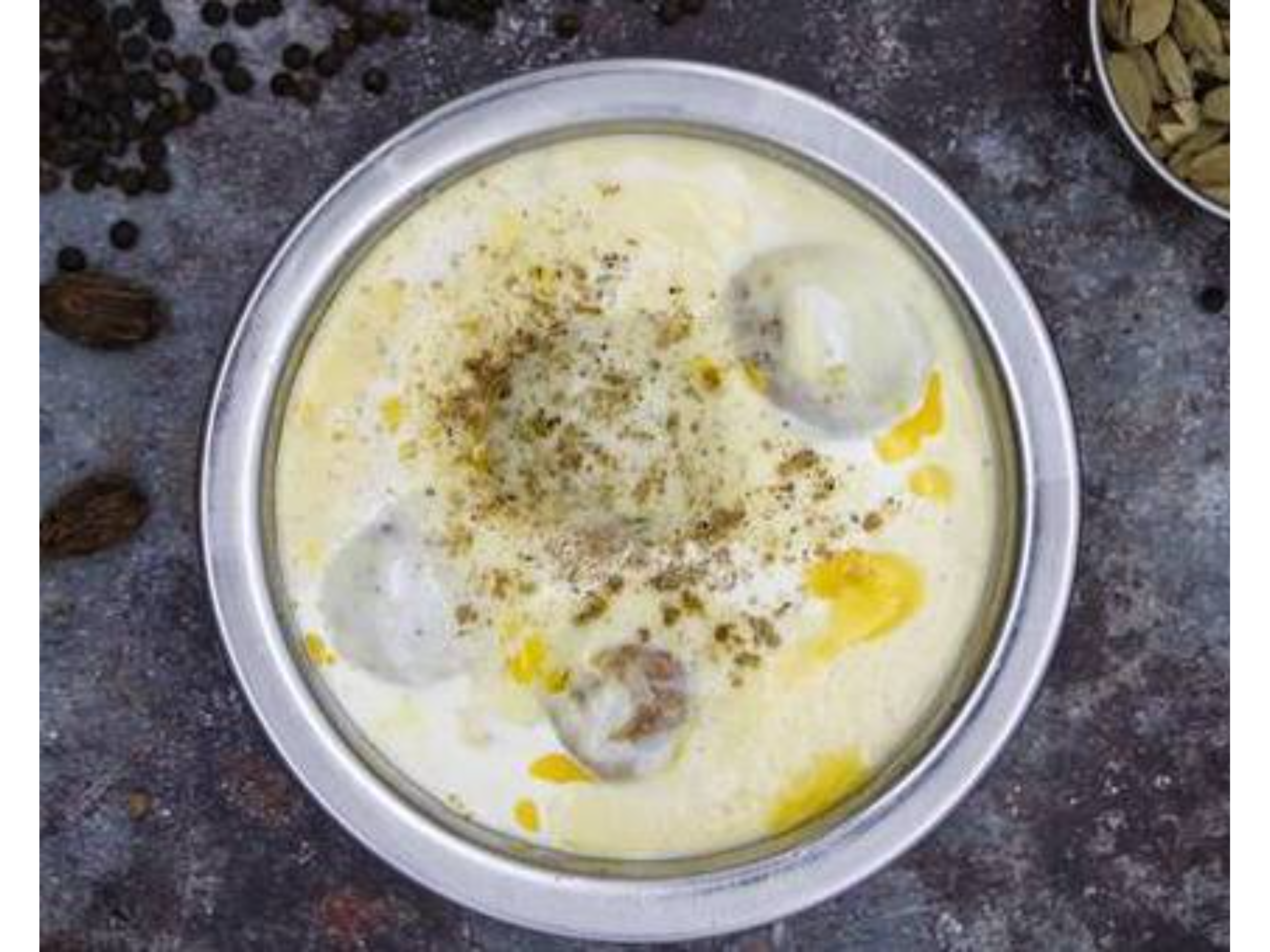Whole milk cottage cheese balls stuffed with raisins & cashew, simmered in curry of cashews, saffron & cardamom.