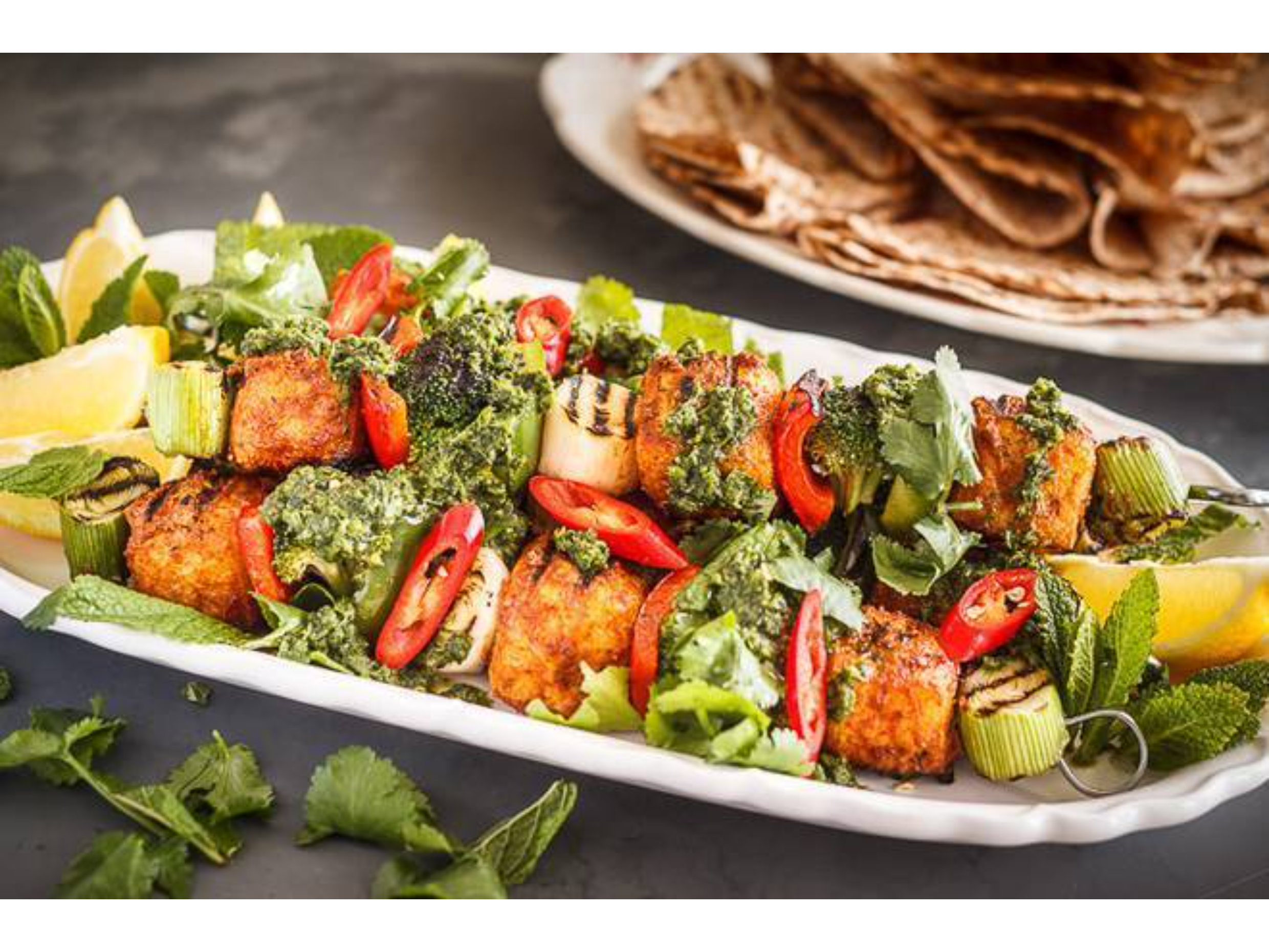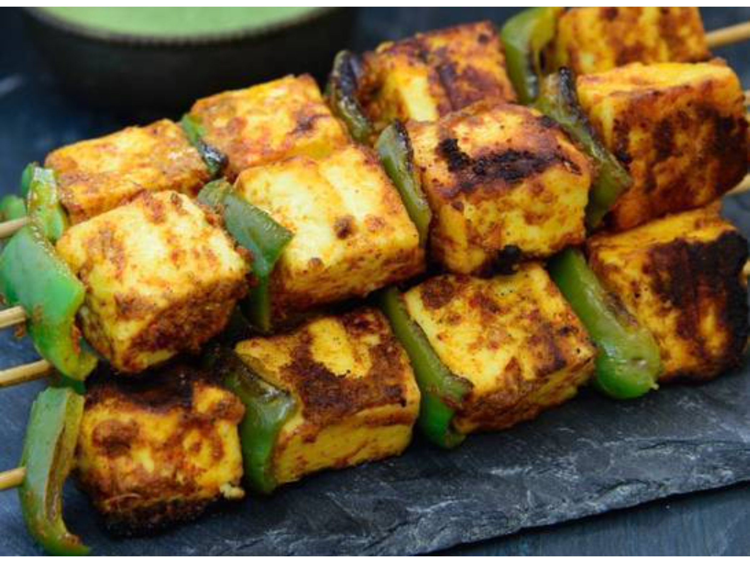 Whole milk, Homemade, Indian fresh cheese, thick sliced, marinated in cashew paste, yogurt, coriander & mint; tandoor grilled.