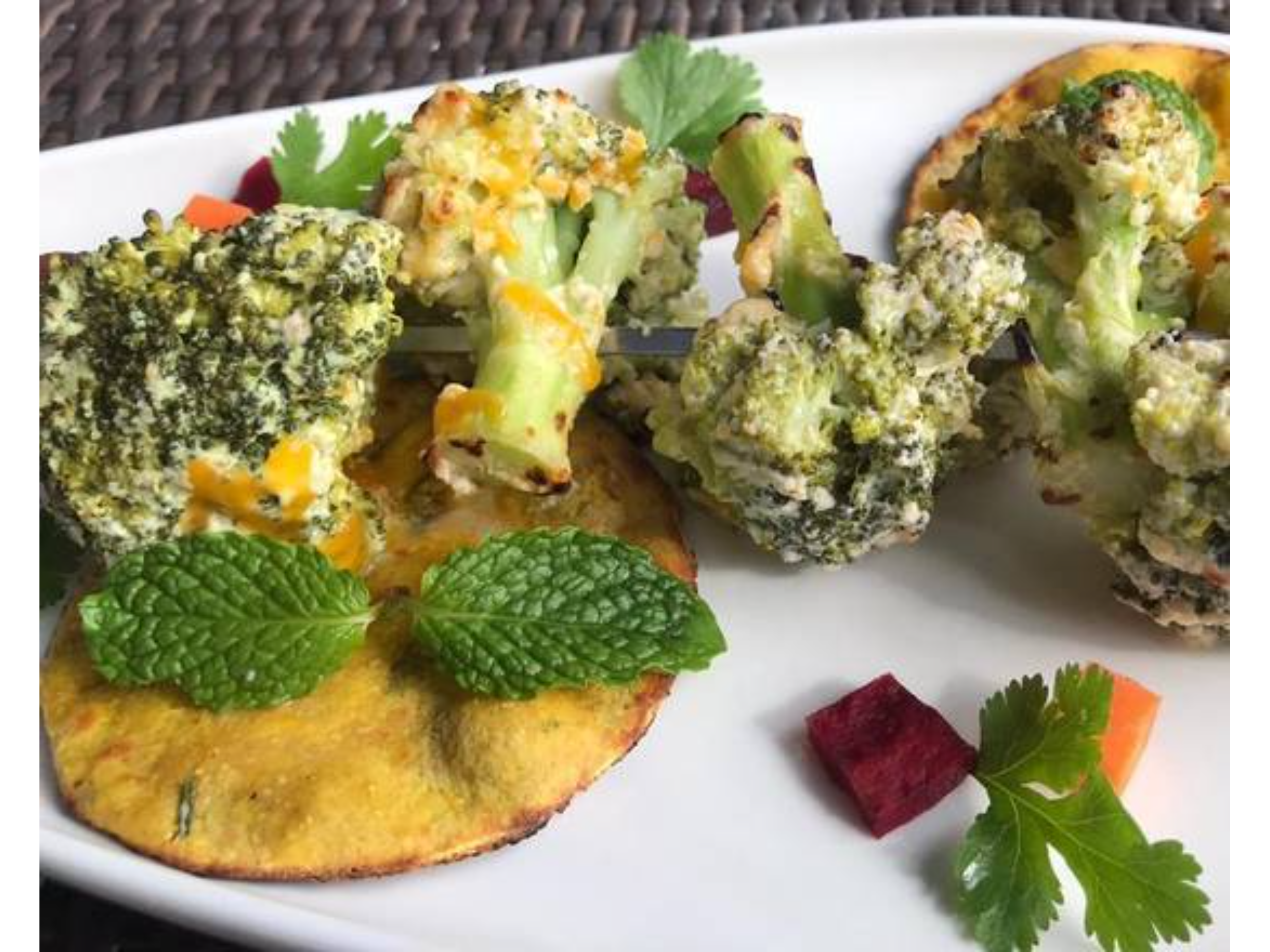 Crunchy broccoli florets marinated in natural yogurt & cardamom grilled in tandoor with fresh whole milk cottage cheese.